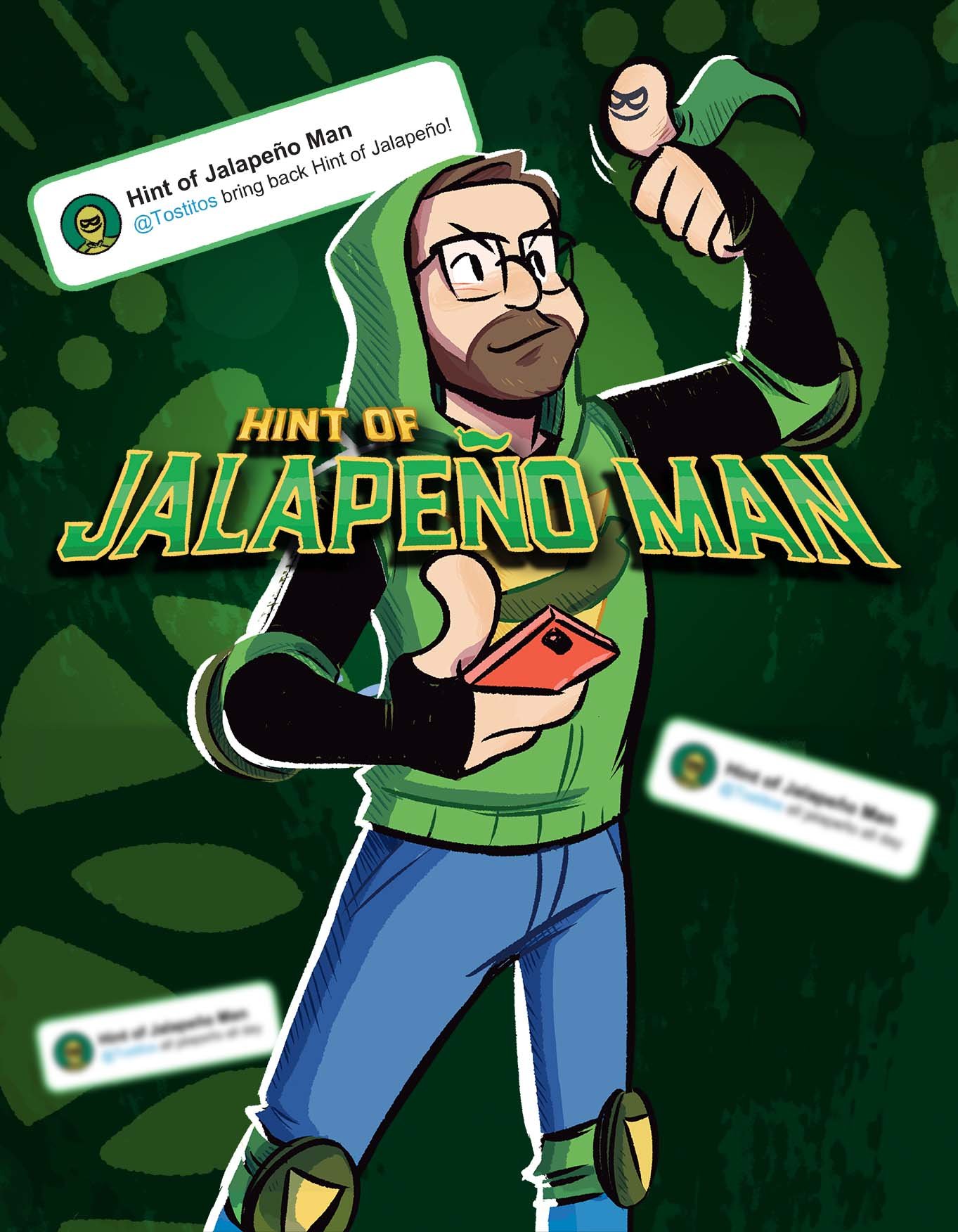 We made a full length comic book where Dan, aka Hint of Jalapeño Man, acquired super-heroic thumbs that were only good for one thing – tweeting at Tostitos.